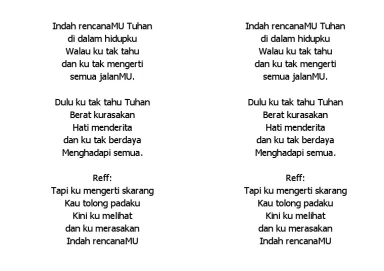 Indah rencanamu verse indah rencanamu tuhan didalam hidupku walau kutak tahu dan tak kumengerti semua jalanmu dulu kutak tahu tuhan berat kurasakan Rencanamu indah philip mantofa & cindy hartsteen key: Salah satu kidung rohani, 'indah rencanamu tuhan', dilantunkan kembali oleh priskila. Lirik lagu sungguh indah rencanamu tuhan, lirik lagu indah rencanamu tuhan meriam bellina , lirik lagu indah rencanamu tuhan chord, . Silakan membeli melalui media resmi streaming musik .
